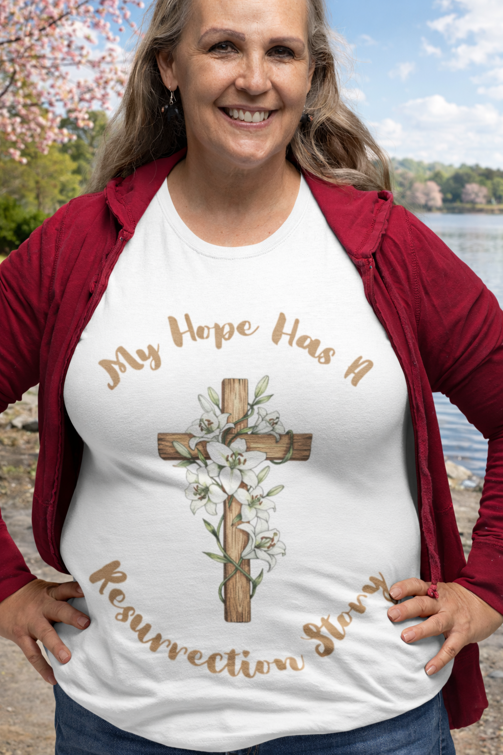 My Hope Has a Resurrection Story Short Sleeve T-Shirt is a faith-filled reminder that hope is not wishful thinking, it is rooted in the risen Christ. Featuring a floral cross design and the uplifting message βMy Hope Has a Resurrection Story,β this tee shares a message of redemption, renewal, and enduring faith.