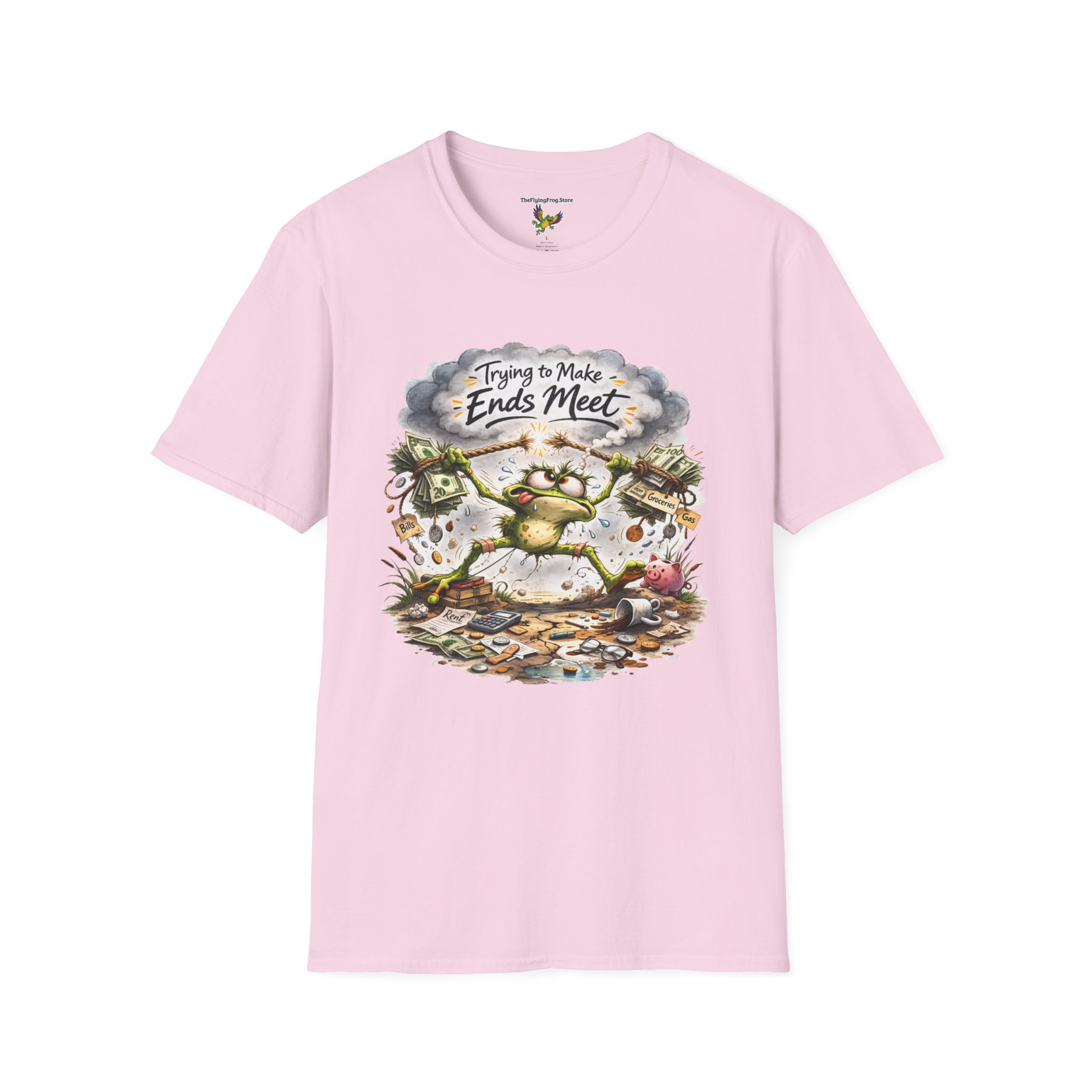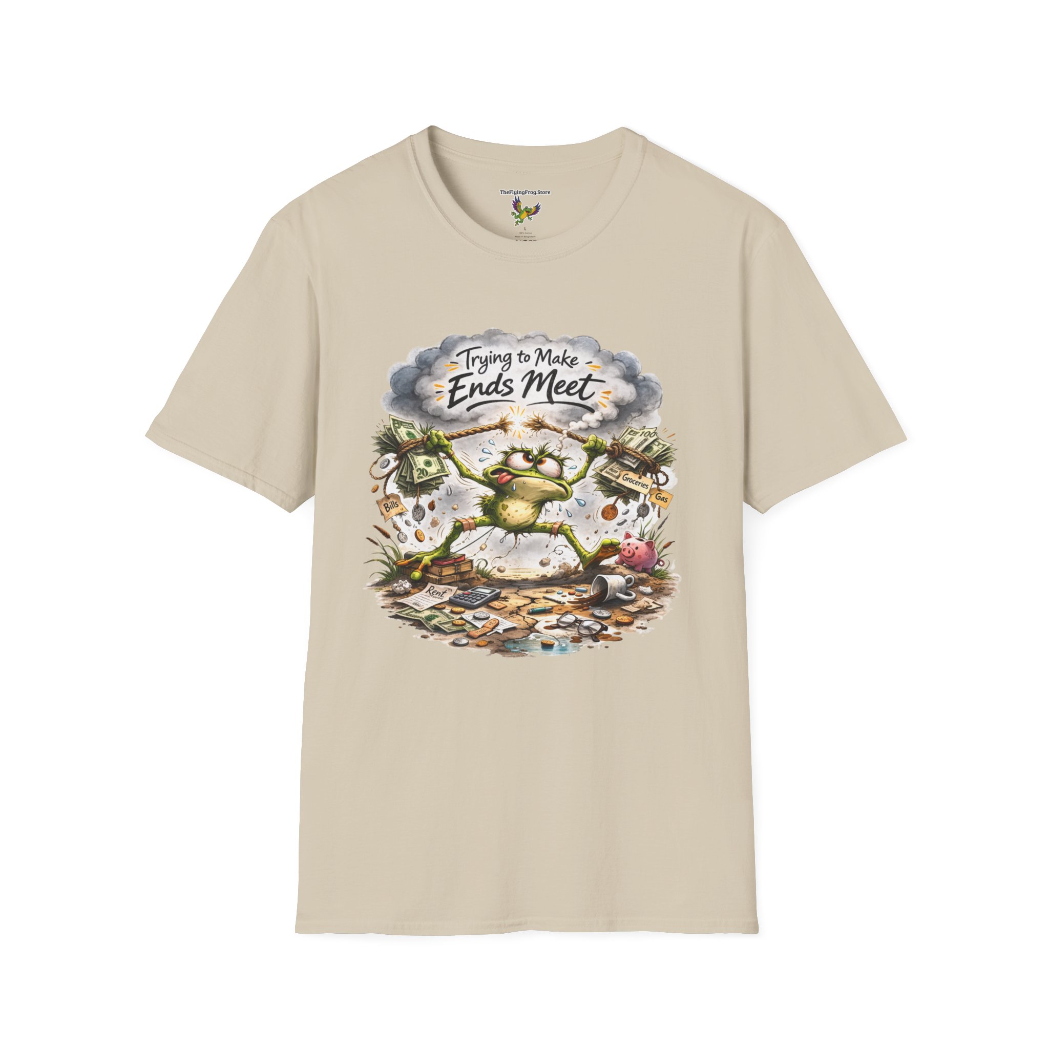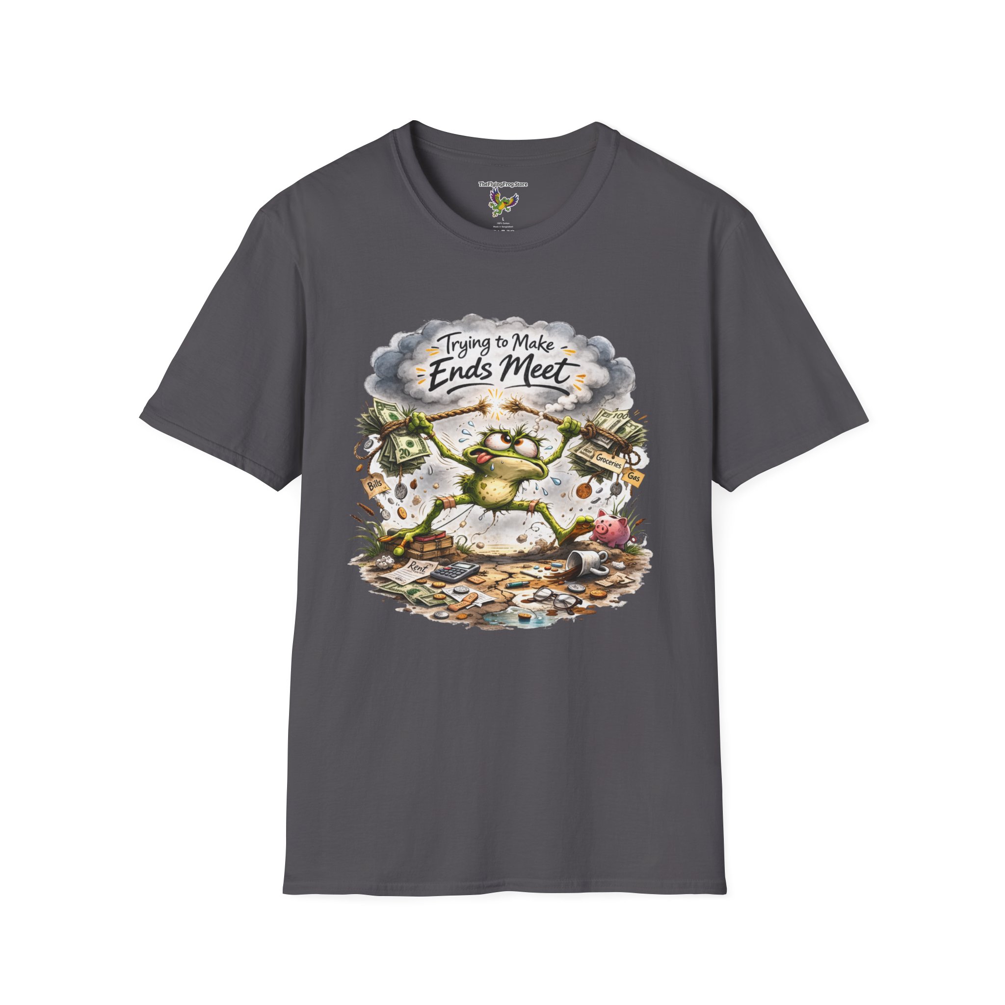 The Trying to Make Ends Meet frog shirt captures real-life budget stress with humor and personality. It features a detailed frog design that shows the struggle of stretching every dollar.